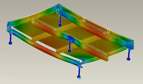 • Dimensionnement d’une Palette robuste : Pour remplacer les palettes en bois qui se déformaient sous le poids, nous avons modélisé et simulé les efforts sur une nouvelle structure capable de supporter une charge de béton allant jusqu’à 350 kg avec une déformation minimum.