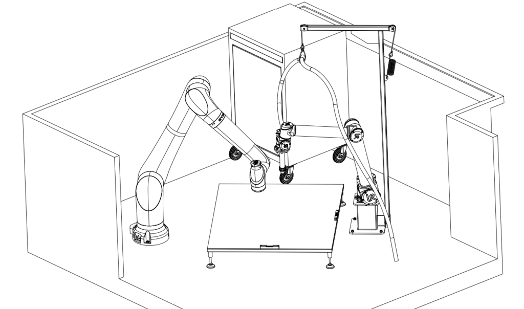 Chaque groupe a ainsi imaginé sa propre version de l’atelier idéal, en y intégrant les deux robots (l’UR10e et le nouveau ROKAE CR20), une nouvelle palette en acier robuste, ainsi qu’une potence indispensable pour soutenir le tuyau d’alimentation.