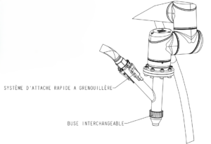 - Conception d’une nouvelle Buse d’impression : L’ancienne installation était soumise à l’usure et manquait de précision. Nous avons conçu une nouvelle tête d’impression interchangeable dotée d’un système d’attache rapide, offrant une grande rigidité et une approche beaucoup plus industrielle.