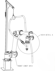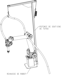 - Intégration d’une Potence : Nous avons également travaillé sur la conception d’une potence pour soutenir le poids du tuyau d’alimentation en béton, évitant ainsi qu’il ne pèse sur l’axe du robot et n’entrave sa précision